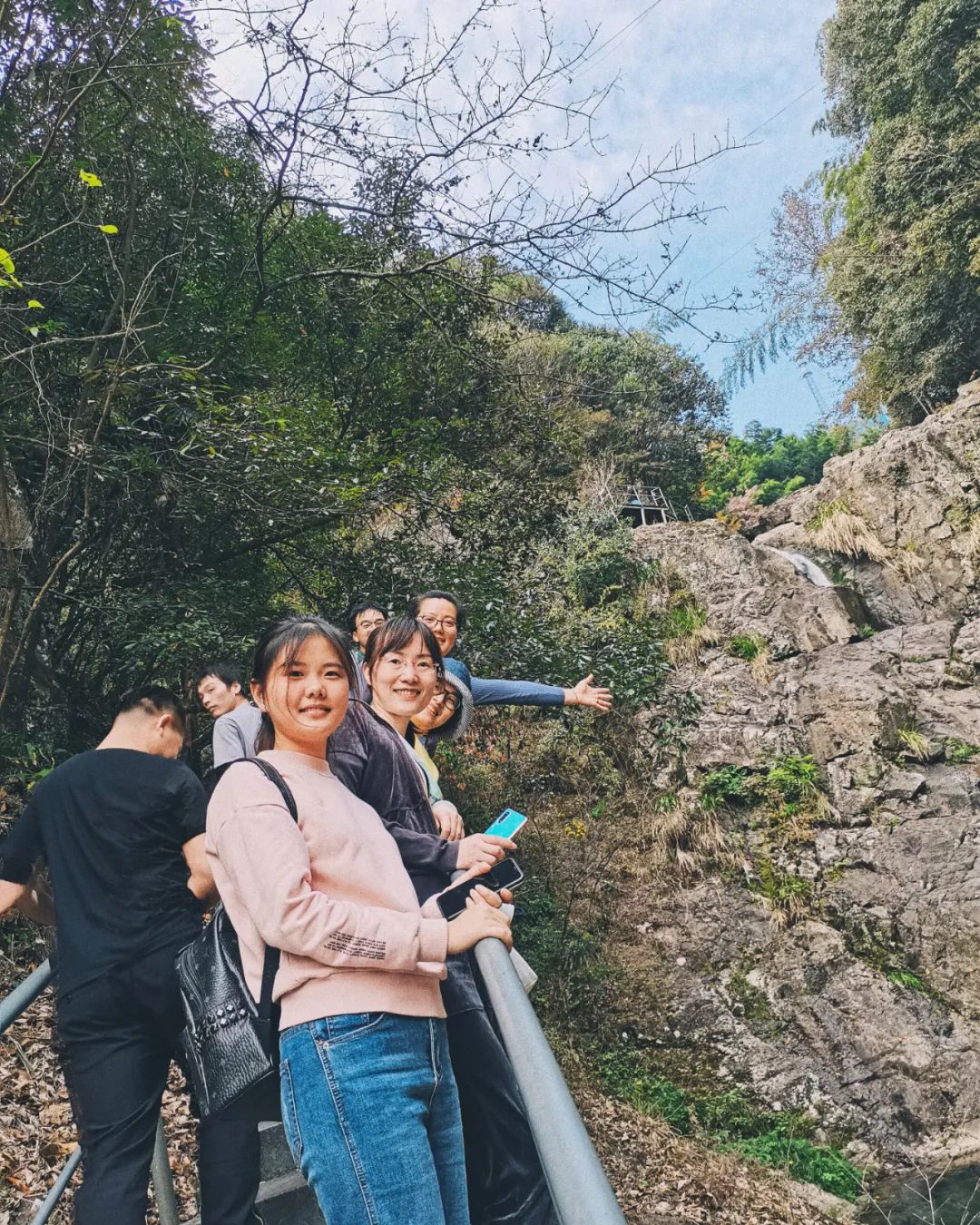 秋游活動(dòng)第一站-四明山丹山赤水風(fēng)景區(qū),是一處以峽谷景觀為依托,以道教文化、浙東古山村風(fēng)情為文化內(nèi)涵,以絕壁、奇巖、古橋、流溪、飛瀑為特色的風(fēng)景名勝區(qū),道家尊之為第九洞天。區(qū)內(nèi)群峰斗妍,古樹參天、竹木蔽日、溪水潺潺,是人們享受自然山水風(fēng)光、沐浴歷史文化、品味山鄉(xiāng)風(fēng)情、休閑娛樂度假的極佳生態(tài)旅游地。參加賞秋活動(dòng)的員工相互照顧,相互交流,驚嘆大自然的鬼斧神工,感受秋日大自然的美景和呼吸著新鮮的空氣,心情格外愉快。